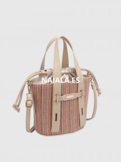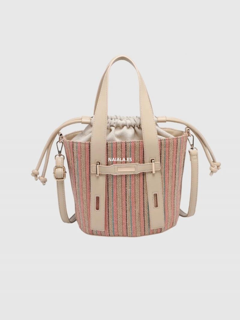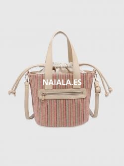 Tejido tela. Tamaño mediano. Diseño estampado. Diseño saca. Cierre frunce. Bolsillos interior. Doble asa de mano. Asa larga extraíble y ajustable.