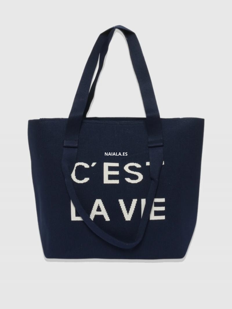 Tejido de punto. Tamaño mediano. Diseño shopper. Cierre de cremallera superior. Monedero interior. Doble asa larga de mano.